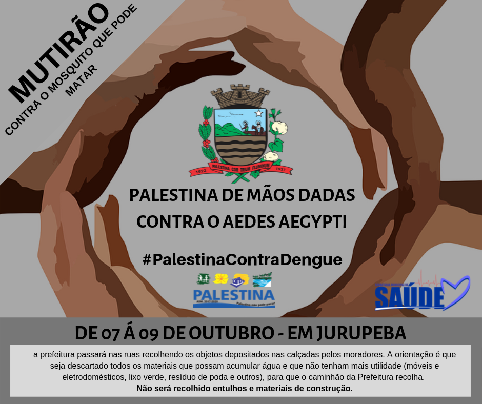 07, 08 e 09 de outubro, haverá o Mutirão do Combate a Dengue em Jurupeba. A Prefeitura