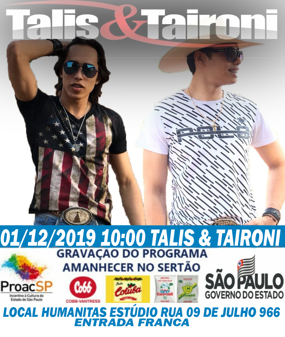 Talis e Taironi já participaram de programas como, Terra da Padroeira, Aparecida Sertaneja, Pampa e Serrado, Festa do Peão de Barretos até no Congresso em Brasília onde tocaram o Hino Nacional na Câmara dos Deputados.