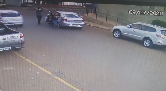 foram registradas pelas câmeras de segurança de vários comércios do centro da