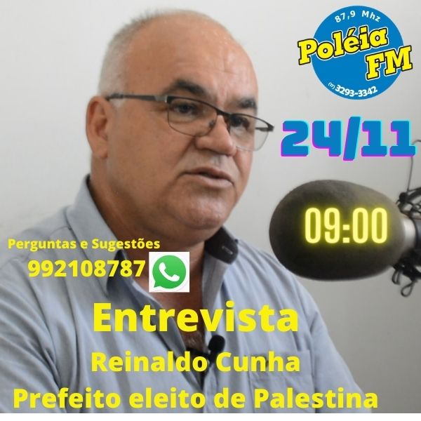 seu estúdio o Prefeito eleito de Palestina, Reinaldo Cunha. A entrevista será