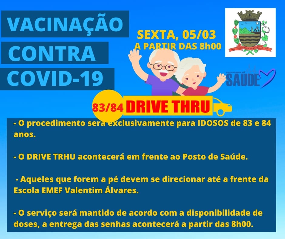 A vacinação ocorrerá no sistema drive-thru e a pé com
