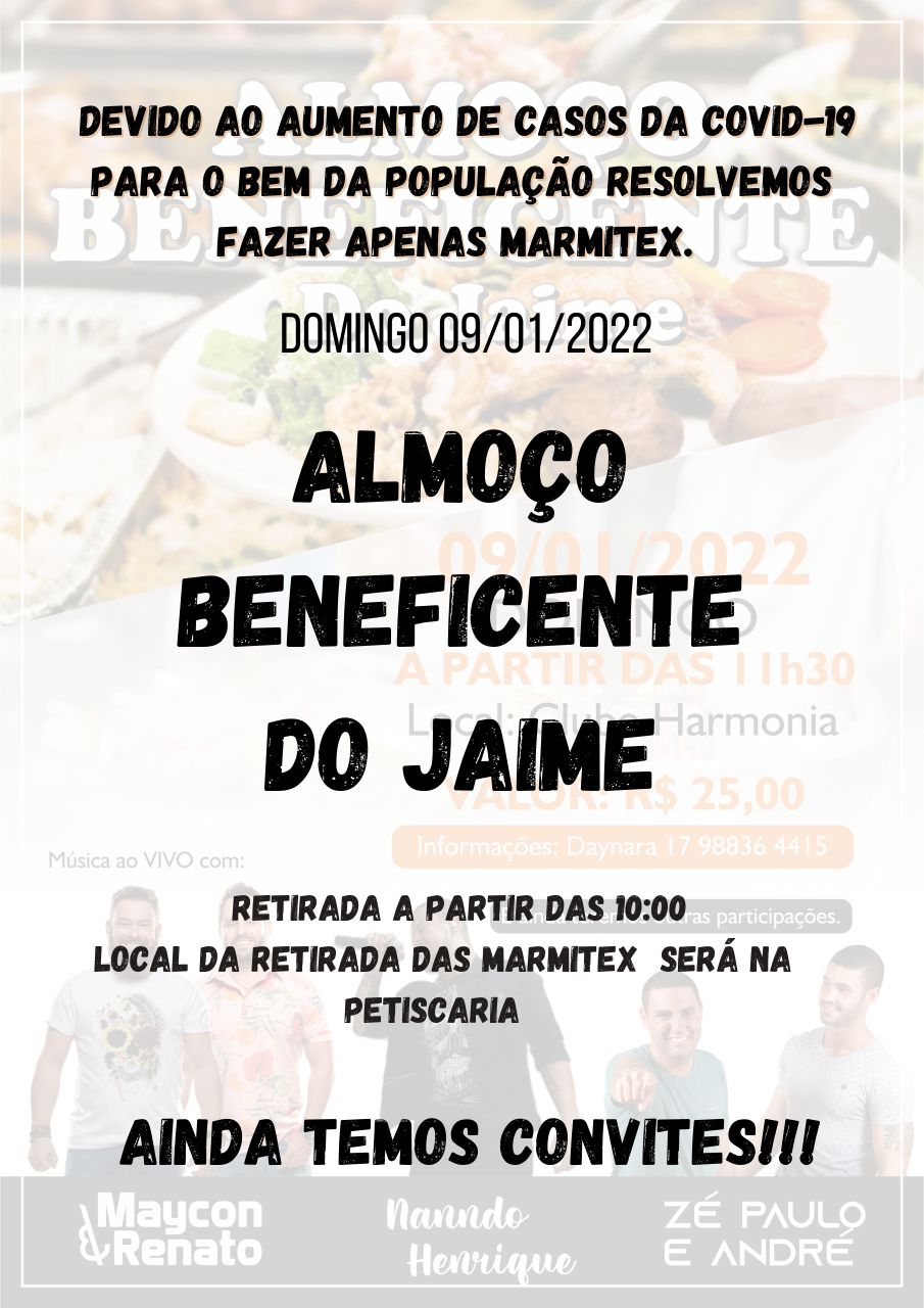 beneficente em prol ao Jaime foi transformado em evento DRIVE THRU.