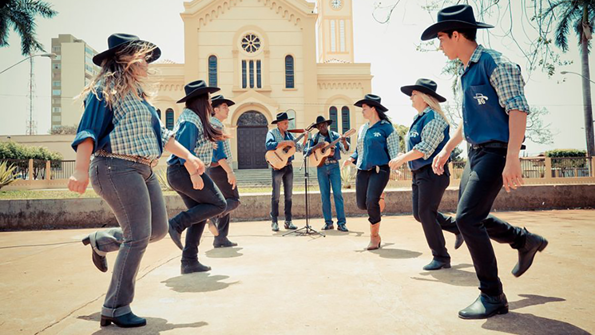 acompanhados por músicas típicas do folclore sertanejo. Os dançarinos formam