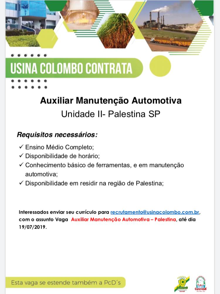 Novas vagas de trabalho na Usina Colombo de Palestina